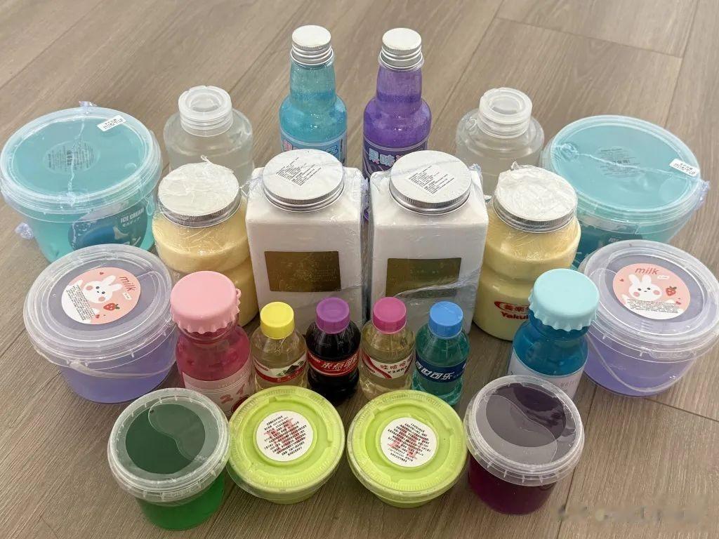 “珍珠奶茶”的“假水”会做成巧克力色,并添加类似珍珠的小圆颗粒;“幻彩琉璃”则会做成色泽光亮的粉色并添加闪粉。更有甚者,会将“假水”做成小瓶的饮料包装,类似酸奶、可乐、雪碧等包装,细看才会发现有“史莱姆禁止食用”的标识。对于儿童来说,有误食的风险。