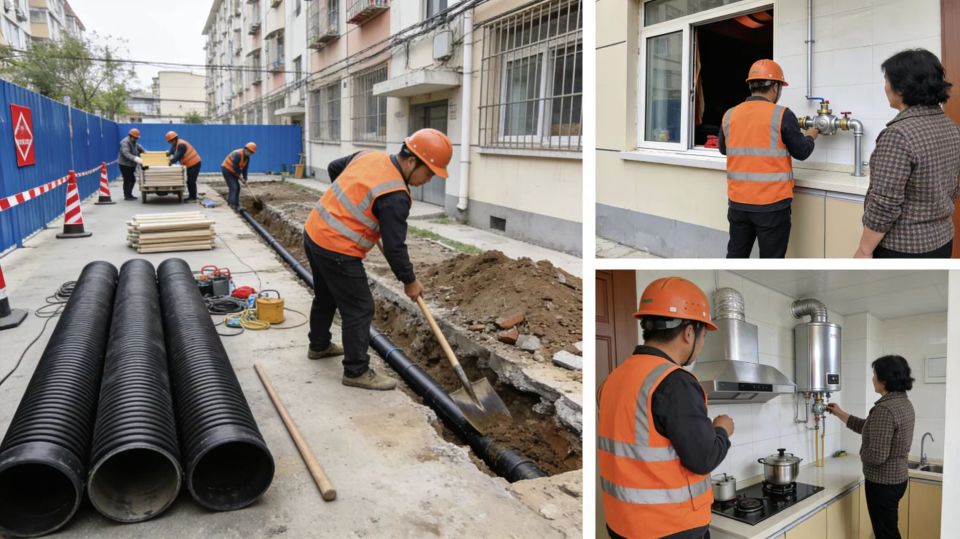 · 全面施工期(排查结束后):根据排查结果,分批次对存在安全隐患的立管、户内管、阀门及计量装置进行免费更换。所有改造费用由地方政府专项补贴与燃气企业共同承担,不向居民收取任何费用。政府通报明确要求,施工期间需制定最小化影响居民生活的方案,并提前公示作业时间。