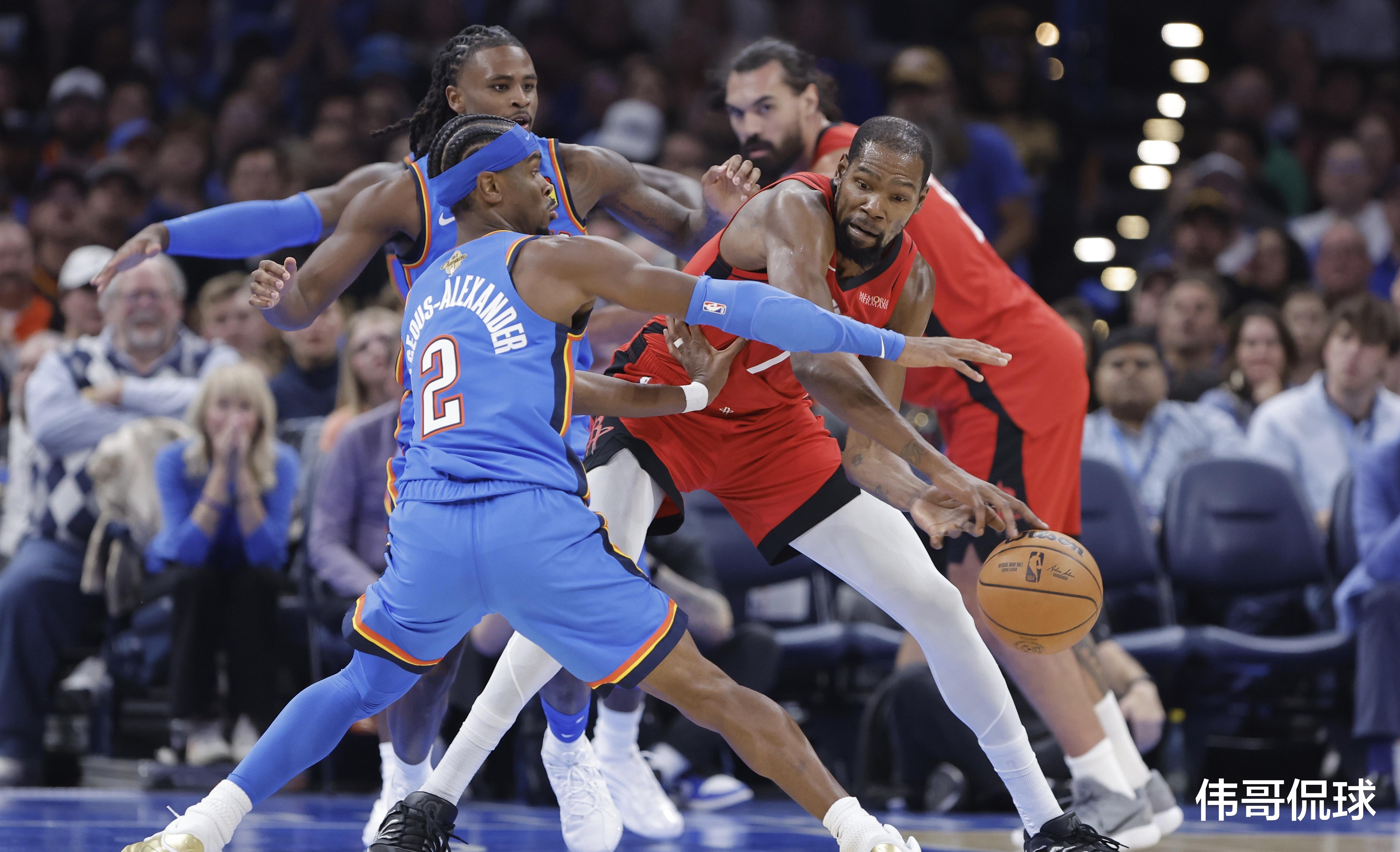 今天,你可以说多尔特防杜兰特,贴防得很好,即便犯满都要死缠杜兰特。而杜兰特因为年龄大+腿部力量不足,最害怕下三路防守的矮壮锋线球员。所以杜兰特尽量少选择持球运球来打多尔特。可是话又说回来,持球少也少的过头了。多尔特虽然缠绕厉害,但是杜兰特是可以选择跟申京多打挡拆战术尝试的,可整场比赛只有一次跟申京的挡拆配合。申京持球确实打得很好,这点毋庸置疑。但申京持球确实也多过头了,尤其是过了半场后就开始高位持球,进行大量的运球,失误风险很高。不过,确实也是因为阿门持球还有待检验,老谢持球太烂。乌杜卡让这群年轻人自己解决问题,这是好事。可是这么用杜兰特,不太合适,毕竟这终究是新赛季揭幕战,对阵卫冕冠军赢球还是很重要的。