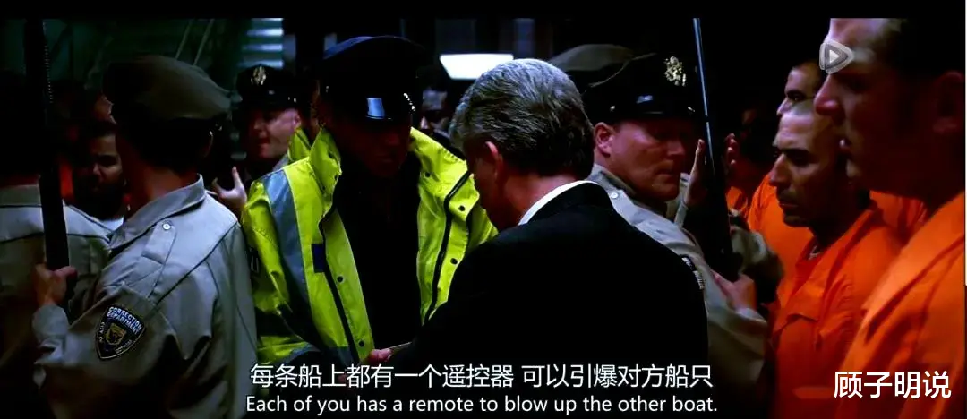 类似的,诺兰指导《蝙蝠侠》中,小丑给了相互仇视的两船人,对手船的起爆器,又同时断绝了双方之间的联系,为了就是让原本无事的两船人,在极限施压当中,基于所谓的“理性”,忍不住炸死对方。