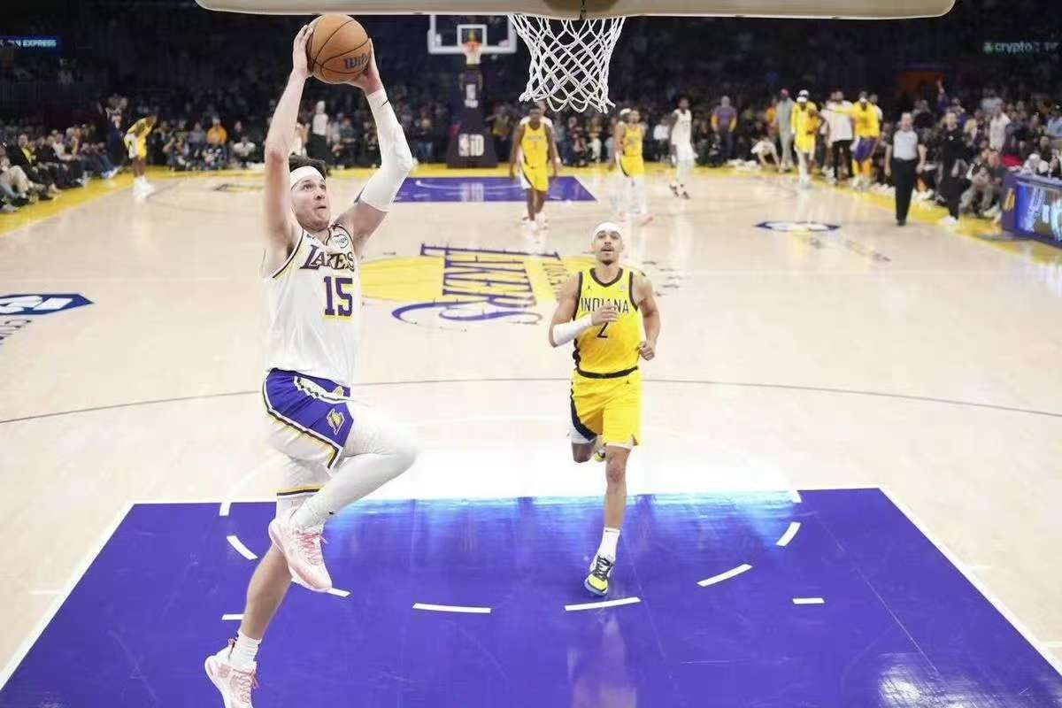 比赛伊始,湖人便展现出强烈的求胜欲望,里夫斯状态火热,开场便连连得分,单节 6 投 5 中,砍下 14 分 2 篮板 2 助攻 ,带领球队打出 13-0 的攻击波,首节结束湖人 44-22 领先,早早奠定优势。然而,次节风云突变,湖人命中率急剧下滑,步行者抓住机会,凭借犀利的进攻和顽强的防守,打出一波攻势,将分差逐渐缩小。半场战罢,湖人以 66-50 暂时领先,优势已被蚕食。