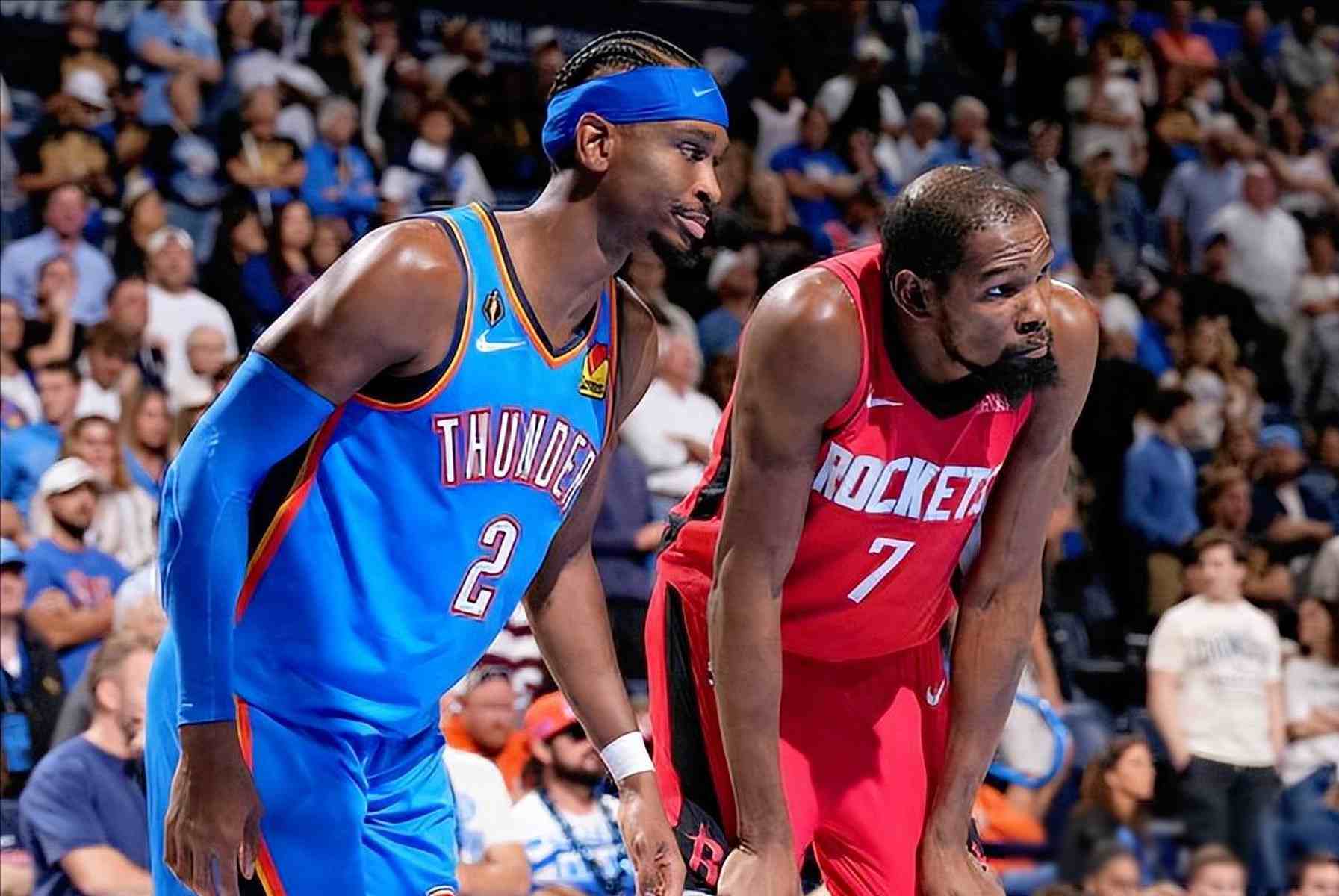 太阳队和开拓者队的威胁看起来小一些,太阳队靠布克和杜兰特在中距离单打,末节能咬住比分,但他们的替补弱、防守漏人,打七场系列赛肯定吃亏,开拓者队只赢过雷霆队一次,亨德森有次单节拿到15分,把雷霆外线换防漏洞全部戳穿,这说明年轻人经验不足,被老练后卫一打一个准。
