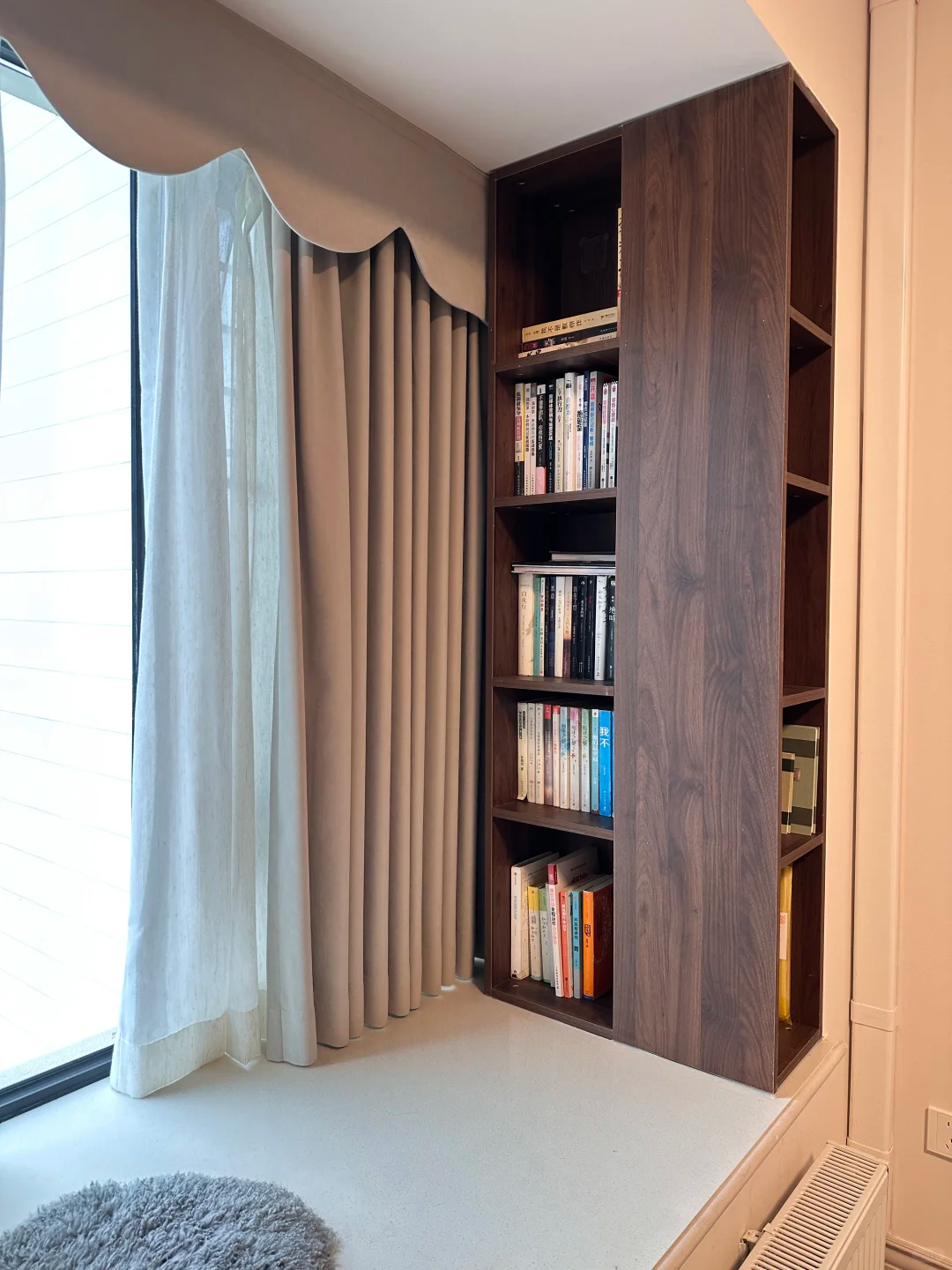 如果家里有飘窗,也可以在飘窗的侧面做一组书柜,