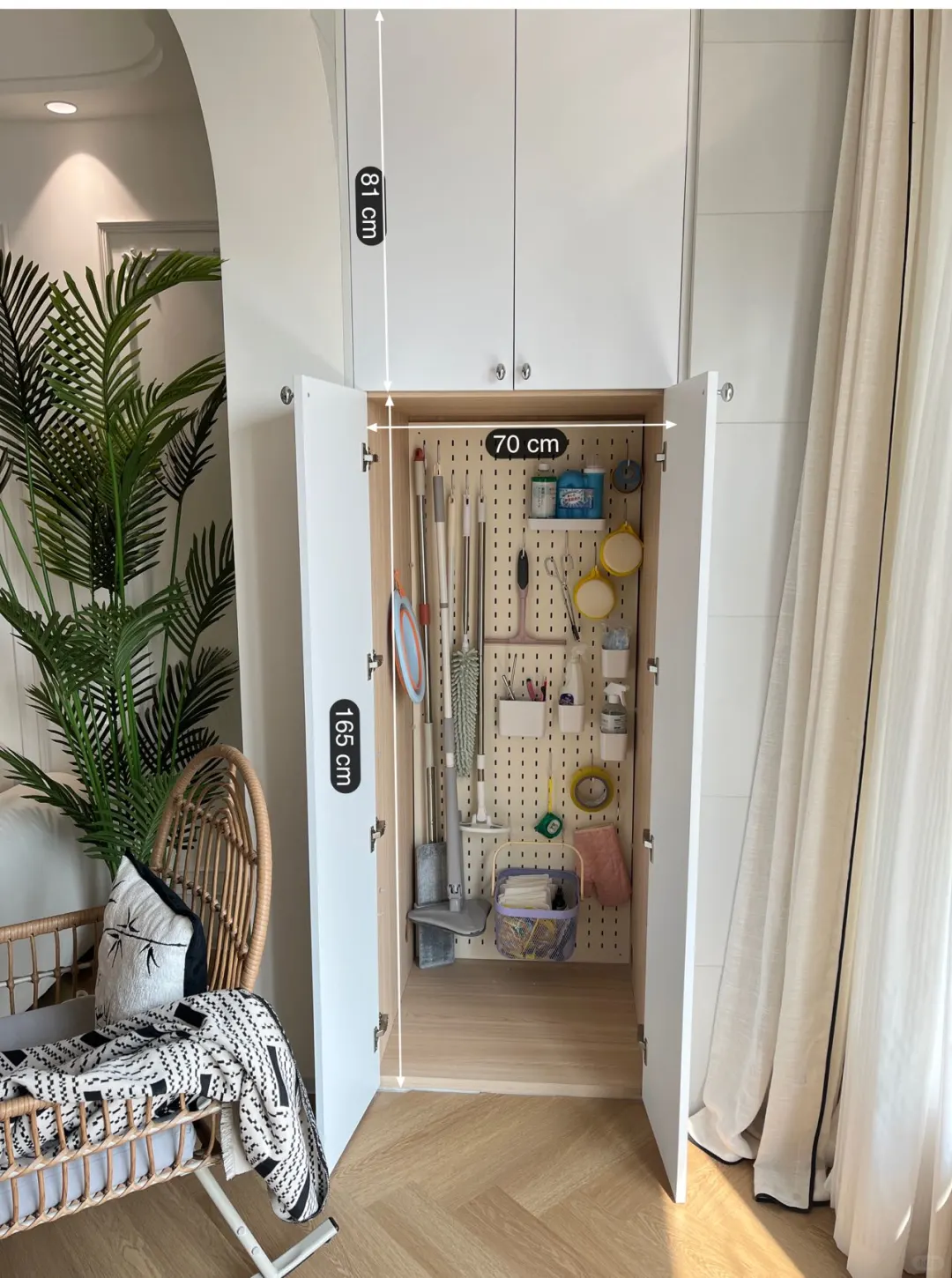 所以针对大量的清洁工具,也需要一个收纳区,把它们隐藏在柜子中,