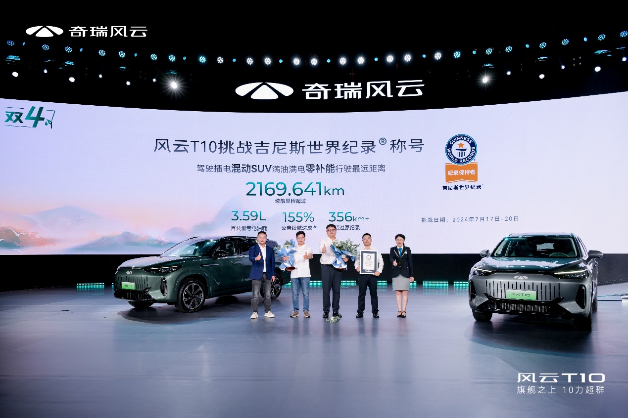 此次发布会上,吉尼斯认证官为风云T10颁发了“挑战吉尼斯世界纪录®”称号。在吉尼斯官方的严格监督下,风云T10从香格里拉出发,途经昆明、百色、湛江,抵达终点珠海,沿途最高海拔3459米、最大温差超20°C。经吉尼斯反复核算,风云T10以全程0补能、2169.641km的成绩,创造了吉尼斯最长续航世界纪录,超过原纪录356km+。同时,全国各地经销商也驾驶风云T10共赴七彩云南,“百城千号”共同品鉴了新车超长续航的硬核实力。