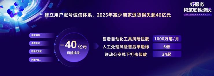 以淘宝天猫为例,2025年初建立的用户账号诚信体系,迄今已累计为商家挽回损失超过40亿元;针对异常物流场景,平台协同商家大幅下调发货物流赔付比例,全年预估为商家减少超过10亿元赔付。其中,通过全链路物流节点实时监控和自动预警,叠加客服与物流的同步介入,家纺行业商家的退款率下降了37%,物流赔付降低了20%。