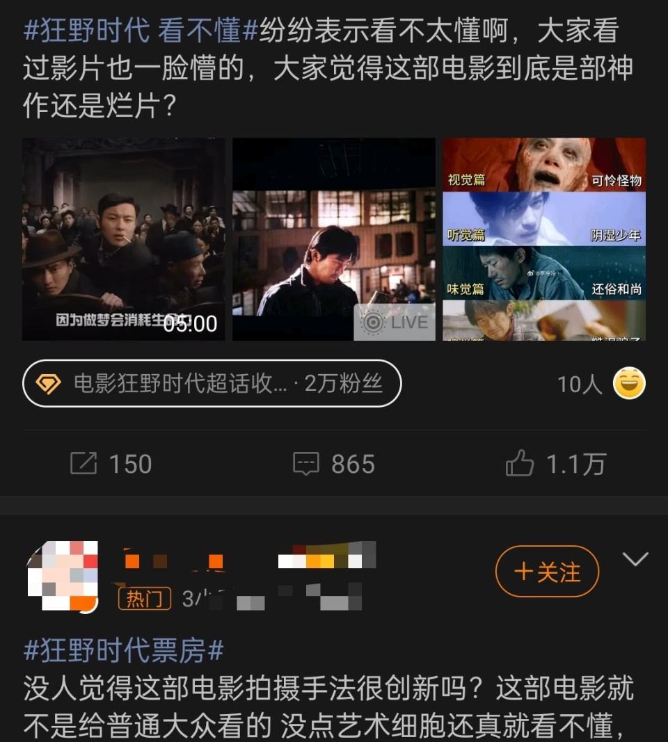 而各大社交平台围绕《狂野时代》的讨论也全都不止于好不好看?而是看没看懂?说实话,这比是“烂片”还致命。