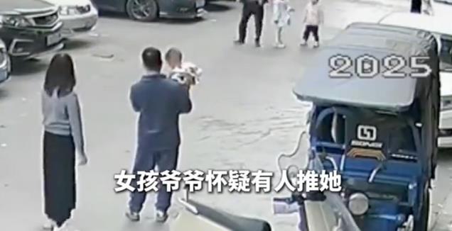 妻子听到爷爷的话,主动上前解释门口有监控,是小女孩自己摔倒的。