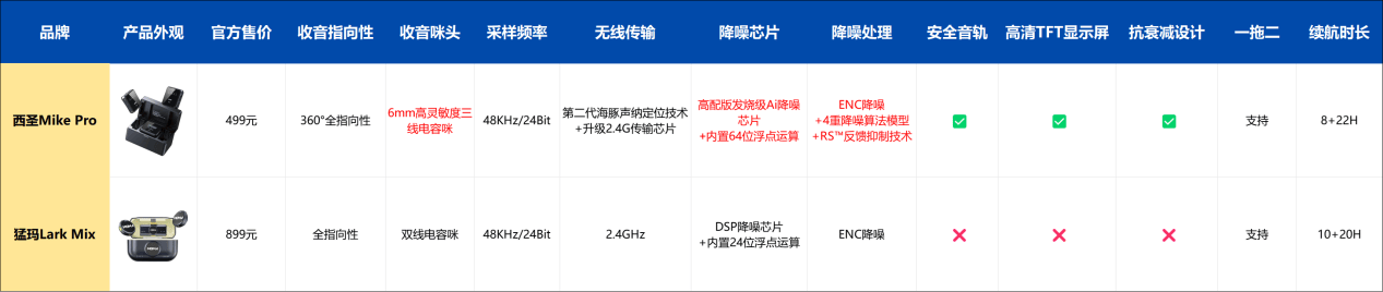 【西圣Mike Pro】:通过实测对比,可以发现西圣Mike Pro这款麦克风收音的清晰度、还原度以及完整性都会更好一点,回放收听是基本跟听原声没什么区别,人声清晰、逼真、饱满!这是因为西圣Mike Pro不仅采用了加强版全指向AI感知麦克风,48KHz采样频率和24Bit位深度,同时还搭载了第二代ALPT高密度拾音技术等,能够带来现场Live般的收音体验。