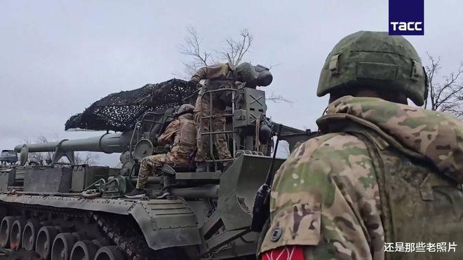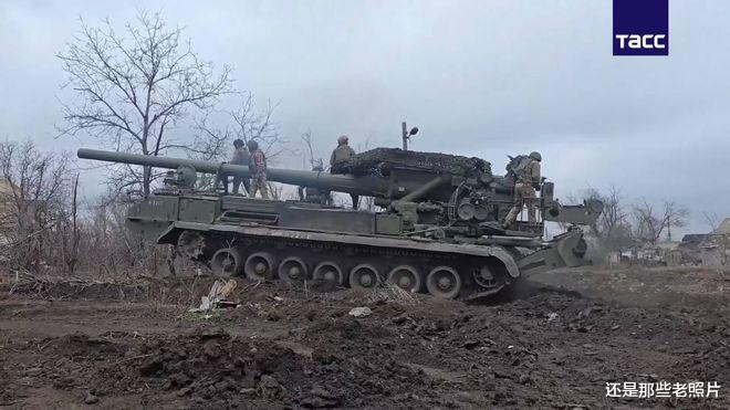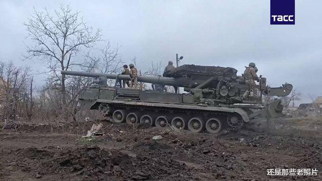 乌克兰战场上,俄罗斯军队的203毫米马尔卡自行榴弹炮正发出巨响。