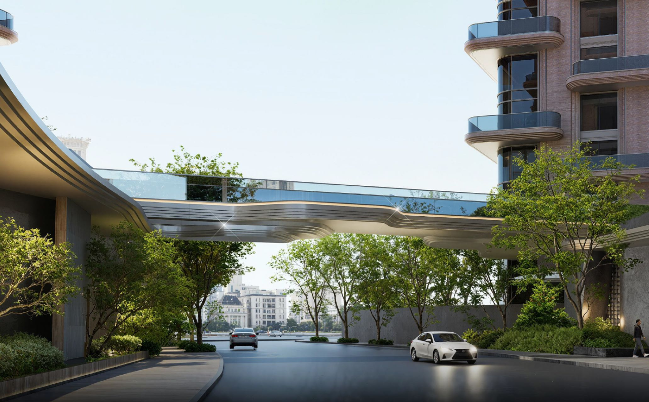 高线生态连廊:匠心打造贯穿所有临河地块的空中慢行系统,通过廊桥无缝连接社区与城市滨河带,形成一条视野开阔的“空中观景长廊”。