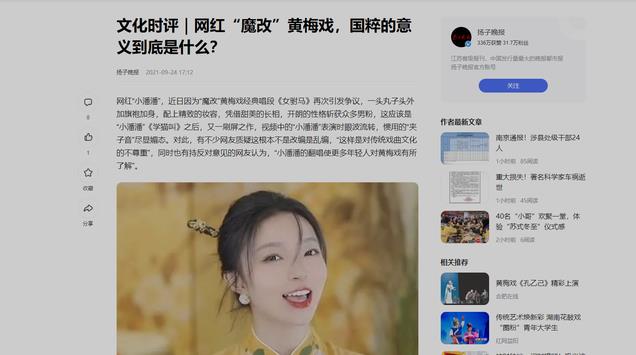 扬子晚报2021-09-24《文化时评|网红“魔改”黄梅戏,国粹的意义到底是什么?》