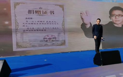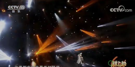 舞台上的他穿着一身黑色衣服,带着眼镜,后面的大屏幕上还放着他的成名曲和各种荣誉证书。