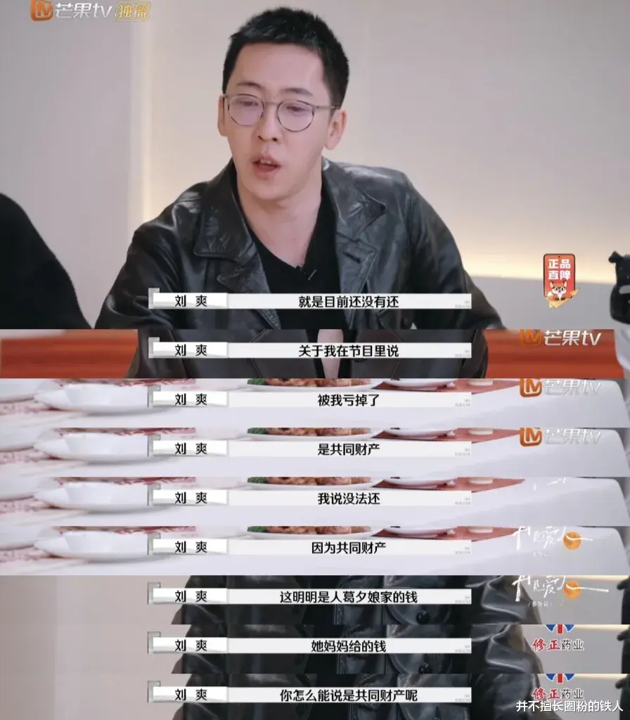 回门宴里刘爽回答网友最关心的问题,葛夕300万嫁妆钱还没还?他是这样解释的,虽然目前还没还,因为现在还了用的是两个人的共同财产,他准备两个人分开后,用自己赚到的钱还葛夕,平时除了吃饭他什么都不干,把钱全攒着还葛夕。
