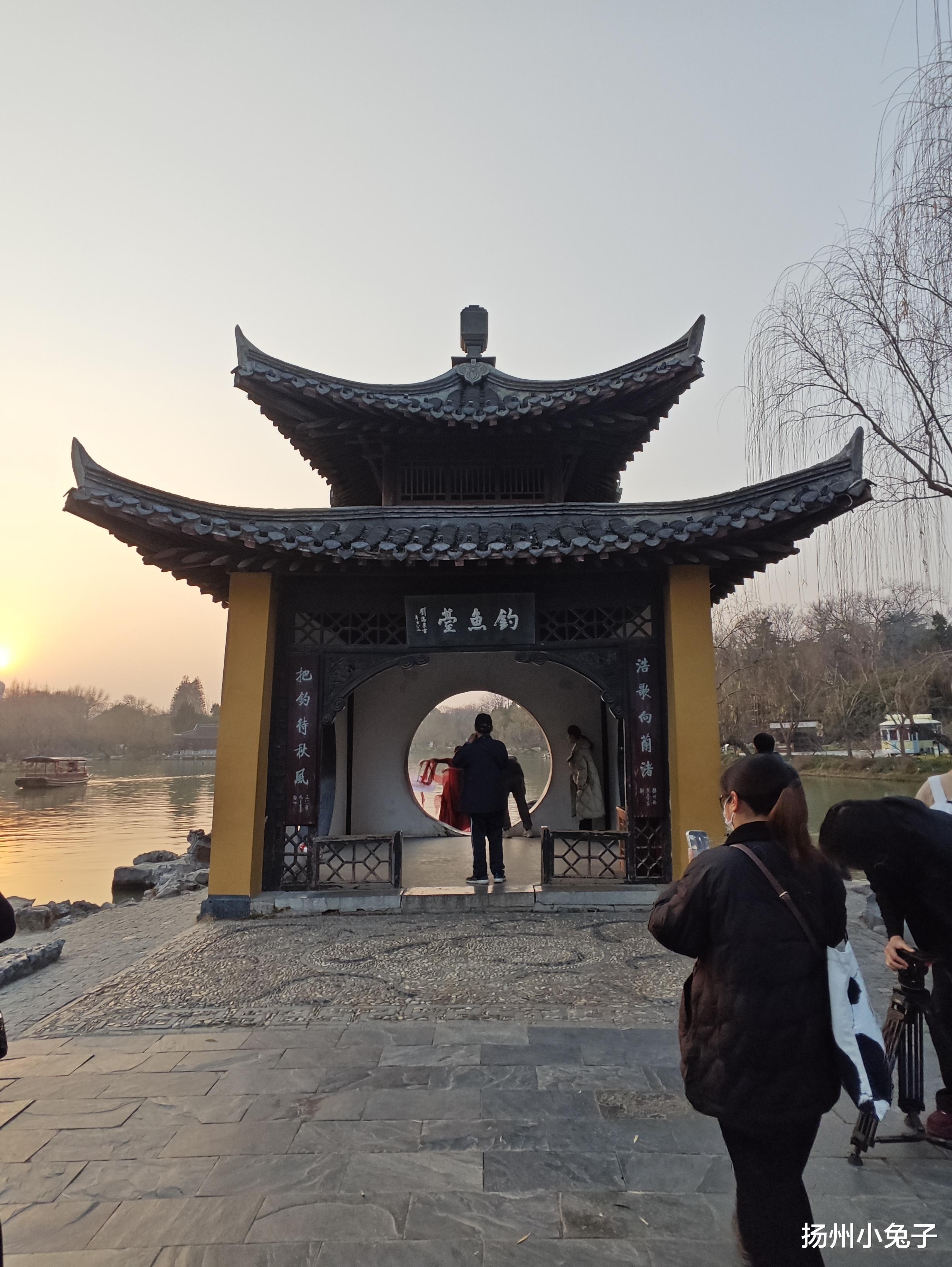 下午四点钟,我们在瘦西湖南门汇合。南门是游玩瘦西湖最正确的打开方式。它带了音乐前奏的舒缓,带了开胃酒的期待,带了大幕徐徐拉开的神秘,让游客在进入长堤春柳优美的环境中,移步换景,步步生花。