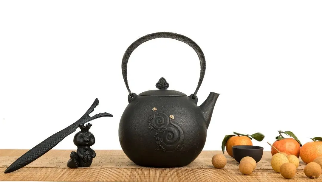 铁壶提梁上镶嵌三颗银钉,寓意“福禄寿”三星高照。每年除夕夜,福星、禄星、寿星三颗星会达到一年中最高位置,分别掌管福气、功名和寿命。祈愿新的一年好运与吉祥。