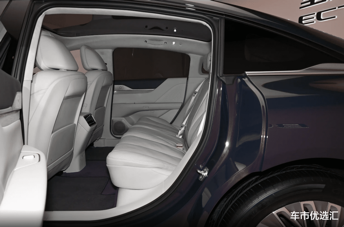车身侧面,一根贯穿式的腰线从头灯延续至尾部,逐渐下沉式的筋线与后肩部的平直线条形成了错落结构,搭配上略有内凹的平整车门型面,增加了车侧的力量感,隐藏式的门把手和溜背式车顶降低了风阻,也增添了整车的时尚动感。车尾则采用了呼应头灯的羽翼式贯穿灯组,中部配有镀铬饰条装饰,微微熏黑的灯腔及小鸭尾扰流板营造出较强的运动氛围。值得一提的是,尾灯中还加入了智驾小蓝灯,以提醒周围的驾驶员。