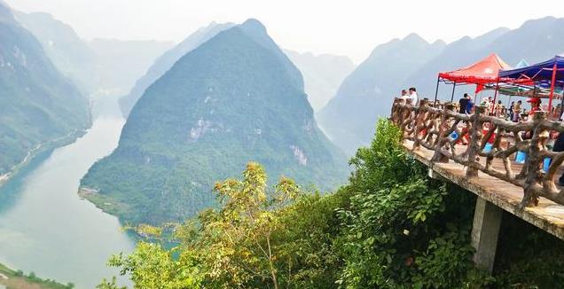 这里还有游船,游客们可以乘船游览红水河第一湾,船票是60块钱一个人,游览时间大约是3个小时左右,我觉得这里游船的性价比还是比较高的。