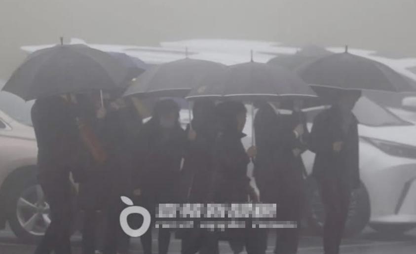 小S则穿着细高跟鞋,在雨中步履蹒跚,需要旁人搀扶。