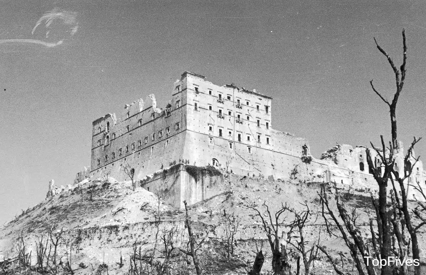 战斗结束后修道院的废墟。尽管对于轰炸这座修道院的必要性仍存在疑问,但其遭受的破坏却毋庸置疑。