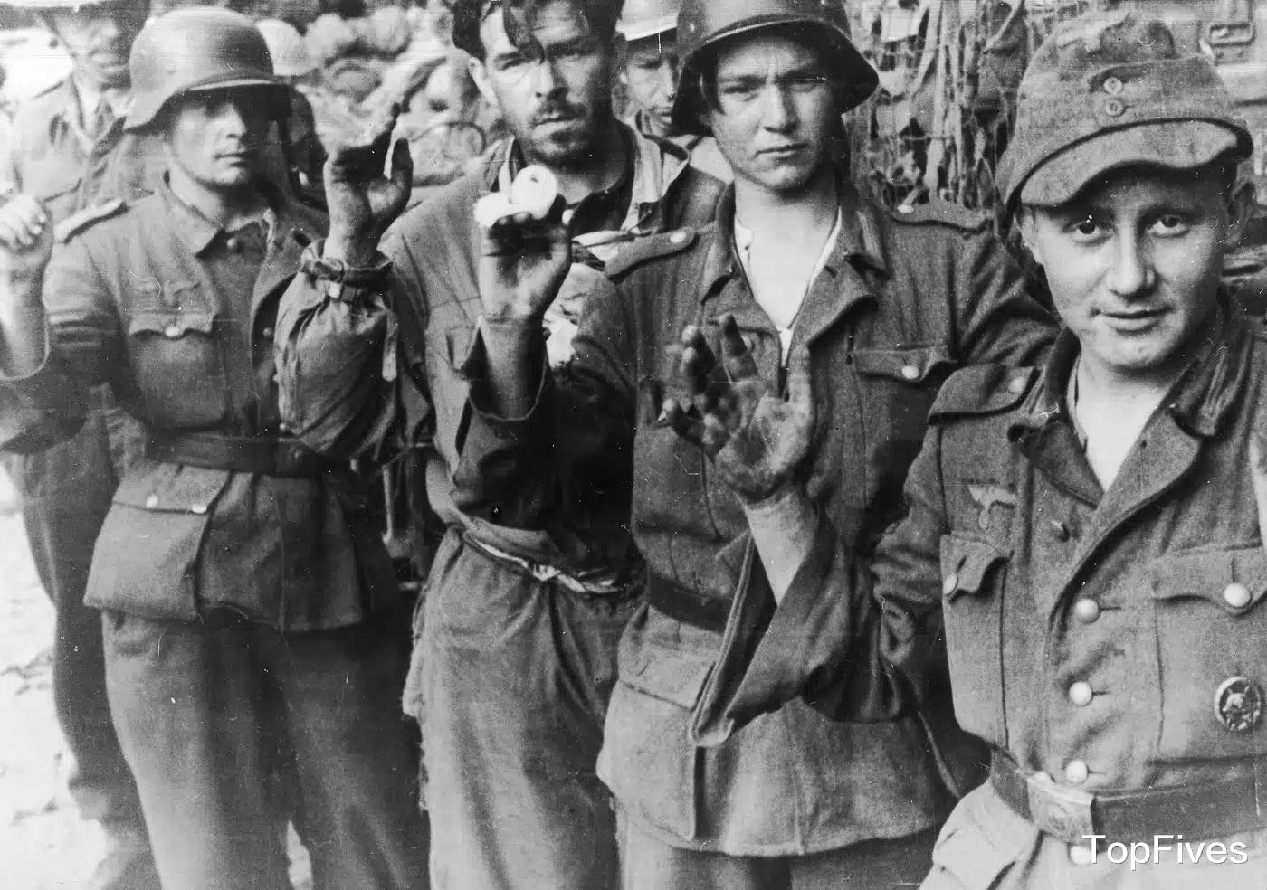 在卡西诺山战役期间,波兰第六装甲团的一名军官俘虏了一名德国狙击手。