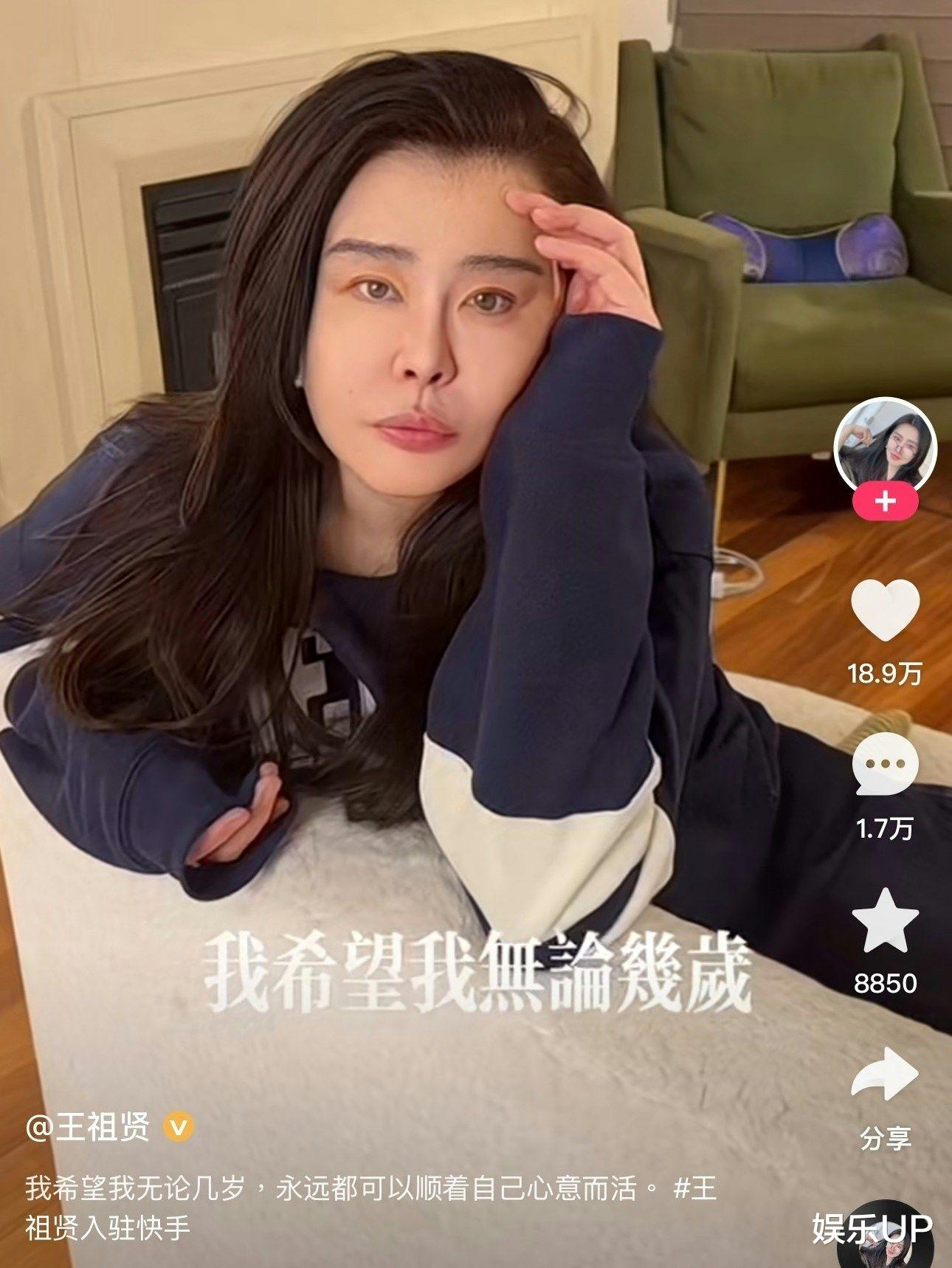 更让人意外的是,最近有网友发现王祖贤悄悄入驻了快手平台,并发布了一段近距离自拍视频。视频里她穿着休闲,坐在沙发上对着镜头梳理长发,整个人状态松弛温柔,颜值依然在线。她配文写道:“我希望我无论几岁,永远都可以顺着自己心意而活。”不少老粉丝激动留言:“女神还是那么美”、“气质一点没变”,话题很快登上热搜。