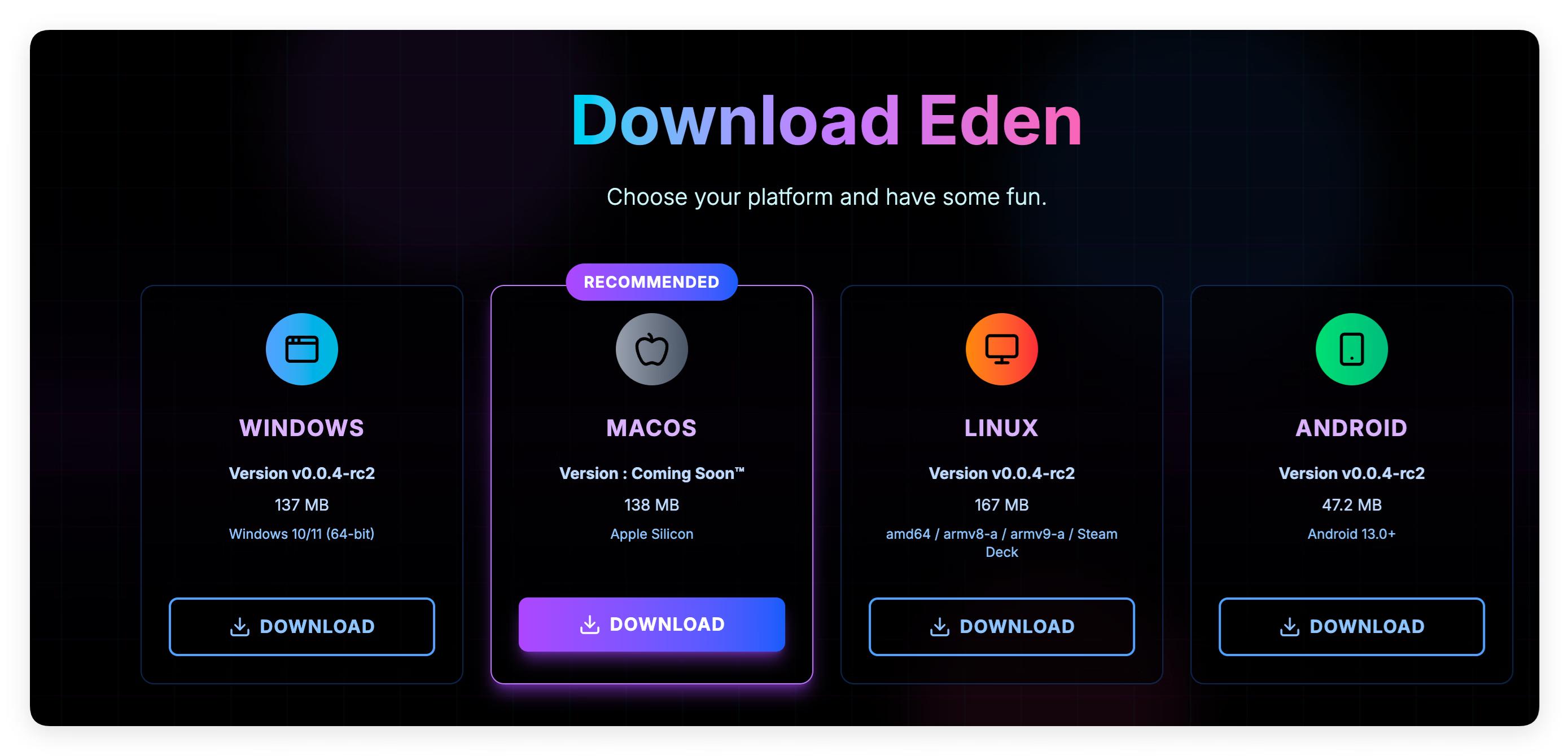 可以看到这个Eden支持平台还是挺多的,除了安卓外,还可以在Linux,Windows,甚至macOS上面安装,直接玩swtich游戏都可以。