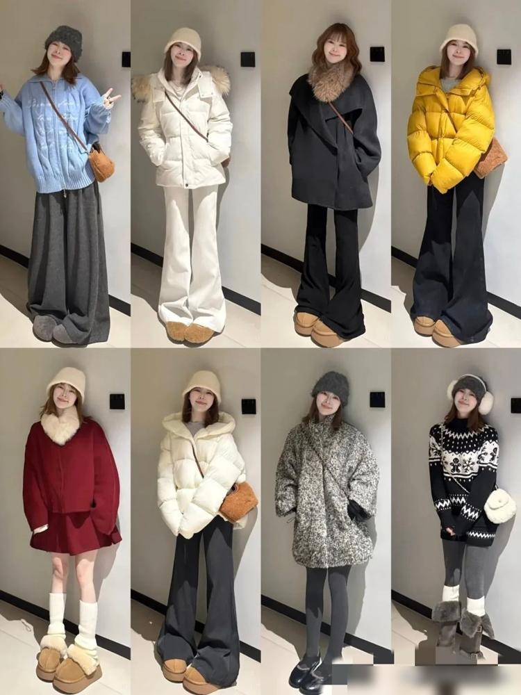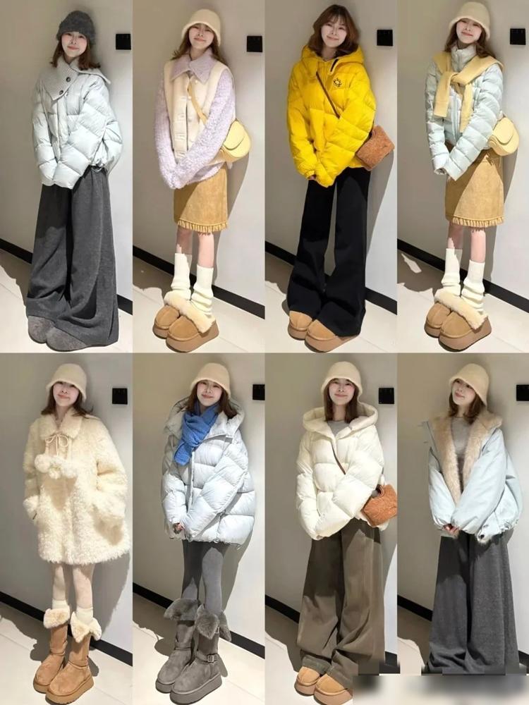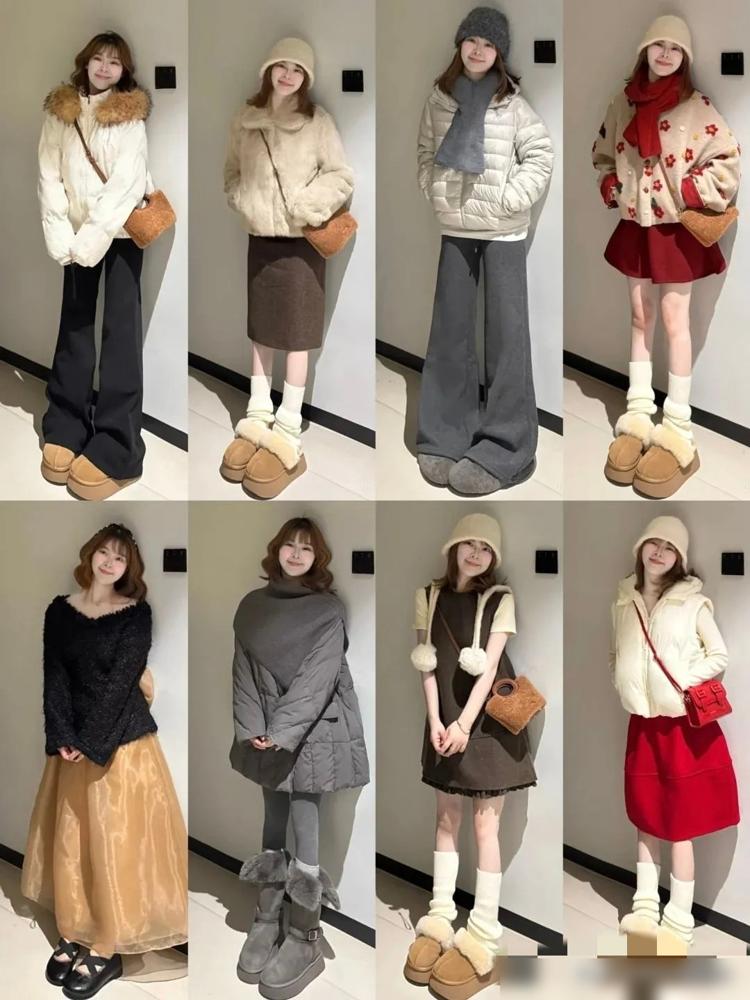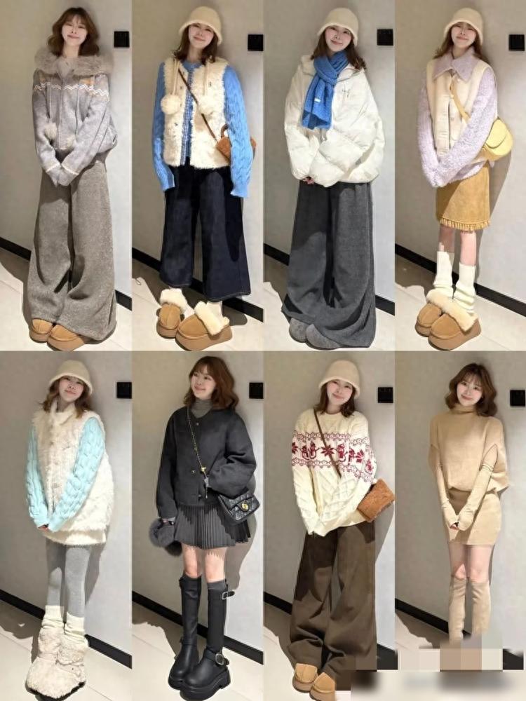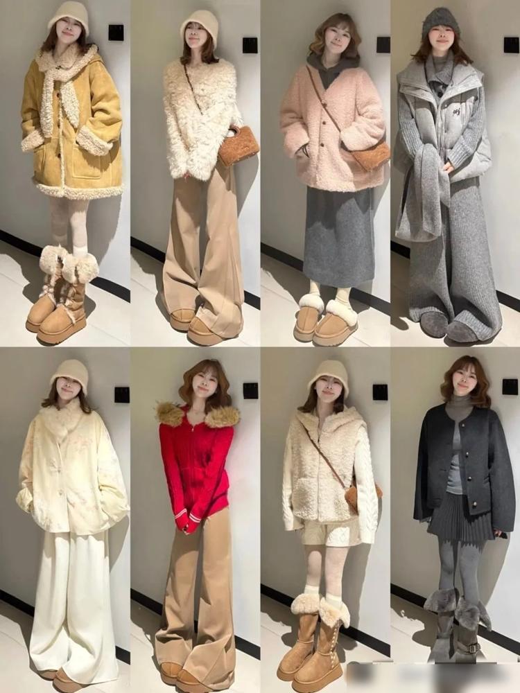 这套冬日穿搭思路确实挺实用的。软乎乎的材质看着就暖和,毛茸茸外套配软糯打底衫,日常穿很合适。