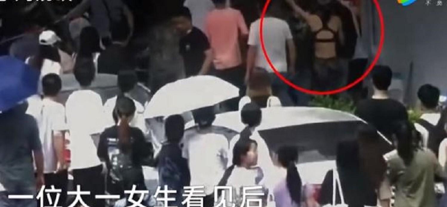 这时,一名前来围观的女同学见状,先是将上衣外套脱下来盖在受害女生身上,过后又发现仅仅一件上衣并不能帮助受害者遮挡隐私部位。