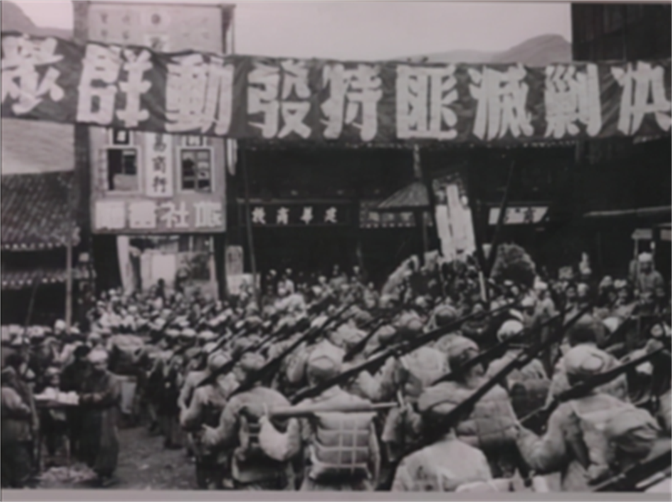 果然,半小时后,20 多名叛乱分子钻了出来,土匪头子武振海扛着机枪走在最前面。