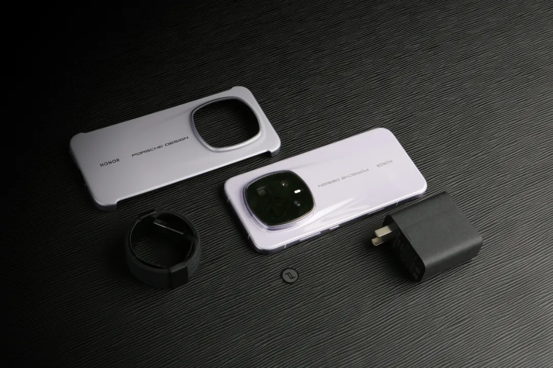 随机附赠的配件也值得一聊。来自保时捷设计Logo的卡针,别具一格,调动用户的情绪价值。随机附赠的半包手机壳同样很有心意,内纹蜂窝状图案,带来强而有力的秩序感;外侧则是采用素皮材质,在保留机身本体的温润弧线同时,为指尖提供别样触感,还对中央位置荣耀与保时捷设计的Logo做了高光处理。