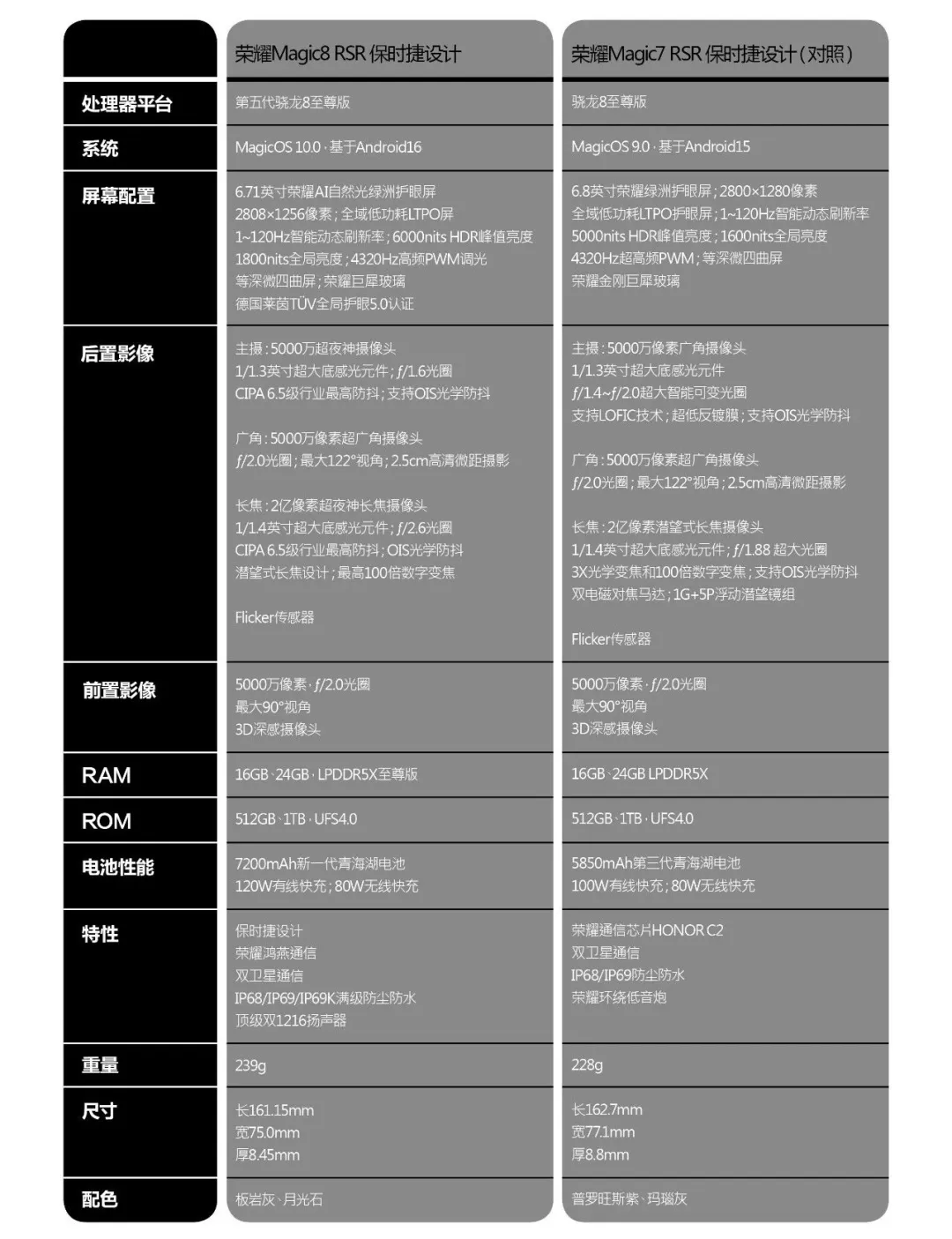 而荣耀看中了保时捷设计与高端形象紧密的关联性,所以荣耀在打造高端手机时,义无反顾地选择了保时捷设计。经历几次合作之后,双方已在设计语言、工艺标准与价值共识上形成高度协同,所以与保时捷设计的联名顺理成章地演变成Magic系列的固定节目。同时,荣耀Magic8 RSR 保时捷设计面临荣耀团队巨大变动的考验,细微缺点都可能被数倍放大,造成棋差一着满盘皆输的局面。这让荣耀Magic8 RSR保时捷设计背负得更多,能否延续昔日辉煌,在此一举。所以今天,咱们来聊一聊荣耀Magic8 RSR 保时捷设计。