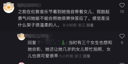 网友透露章泽天本人很温柔,请求合影她二话不说就答应了,还让自己的女儿帮忙拍照,虽然女儿没有露面,但从网友的话语中就能听出,她的女儿乖巧又听话,一定格外讨人喜欢。