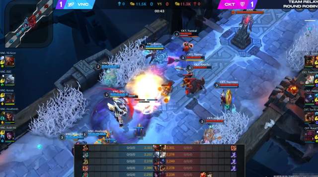 比赛刚开始,两支队伍就打的不可开交。而VNC凭借着更加出色的团战配合可以说是一直压着CKT在打。不过有趣的是,当游戏来到后期时,CKT终于是抓到了VNC的失误并完成反打。也正因为这一波团战的胜利,再加上游戏后期VNC这边复活时间太长,反倒是让CKT完成了翻盘。最终,CKT凭借着3-1的总比分成功击败了VNC,赢下了这一轮比赛的胜利。