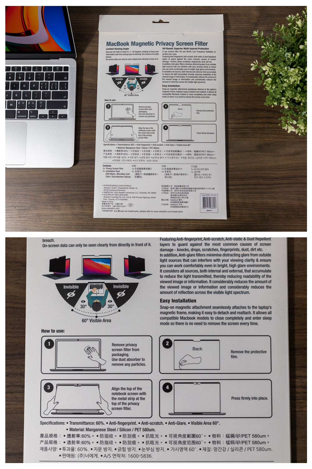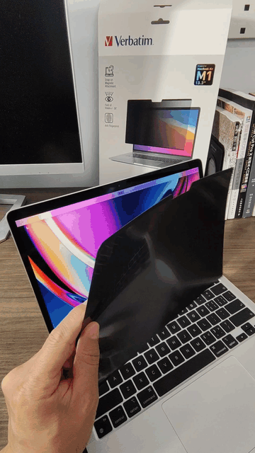 不过现在好了,楼主找到了一款可以随用随贴的磁吸式防窥膜,而且还是MacBook(M1)款的专用款。就是这款威宝(Verbatim)笔记本电脑防窥膜。
