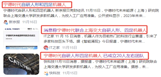 与此同时,宁德时代也要造人形机器人。11月15日消息,宁德时代未来能源(上海)研究院(以下简称“未来能源研究院”)联合上海交通大学研发多款机器人,为投入工厂应用准备。