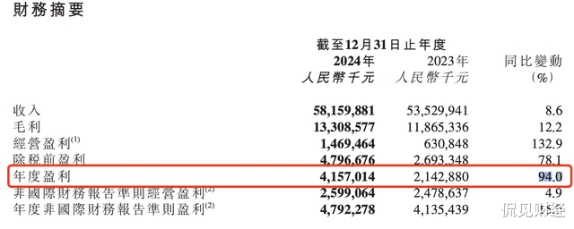 3月6日,医药电商龙头企业京东健康发布2024年全年业绩公告。公告显示,2024年全年京东健康实现营收581.59亿元,较去年同期535.29亿元增长8.6%;毛利润为133.08亿元,同比增长12.2%;净利润为41.57亿元,同比增长94%。