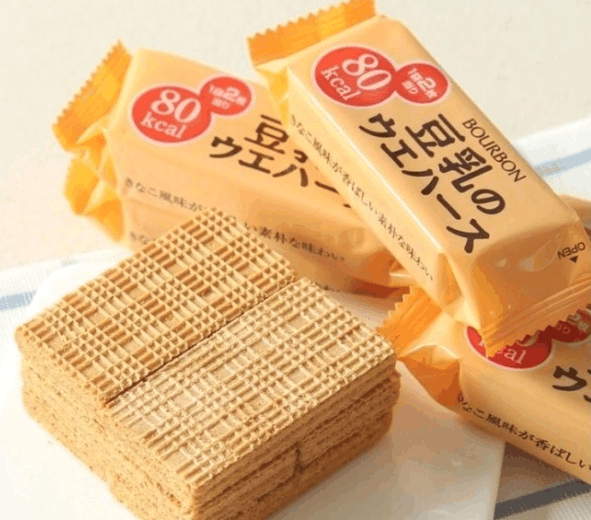 十分松脆的一款威化,口感清淡不甜腻,散发出烘焙后的黄豆和小麦粉天然的幽香