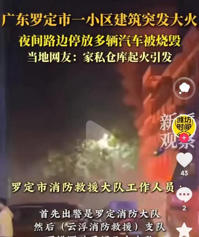 2024年12月31日晚上9点多,有网友发视频,称广东省罗定市一小区突发大火,并且路边停放的10余辆车均被烧毁。