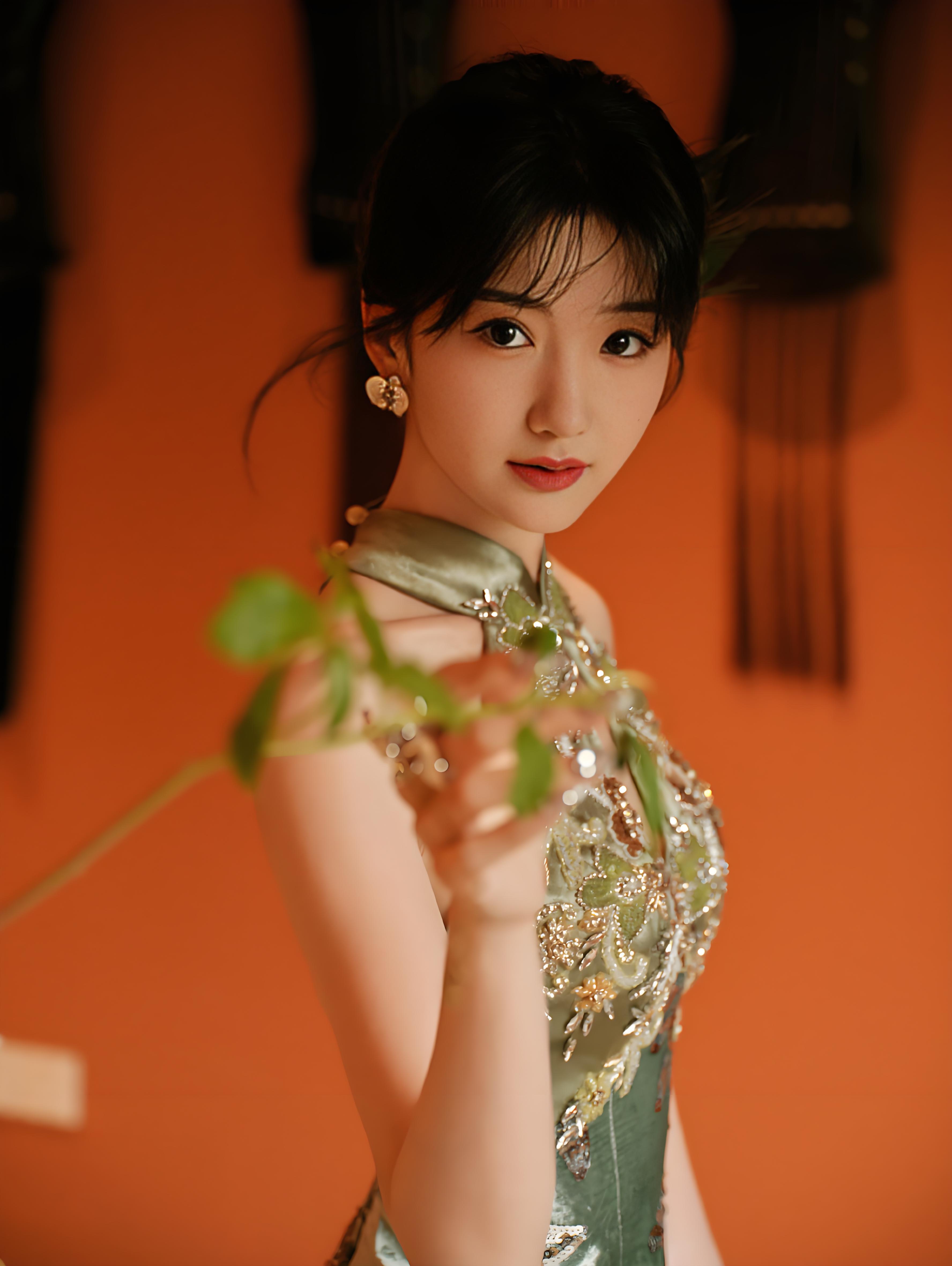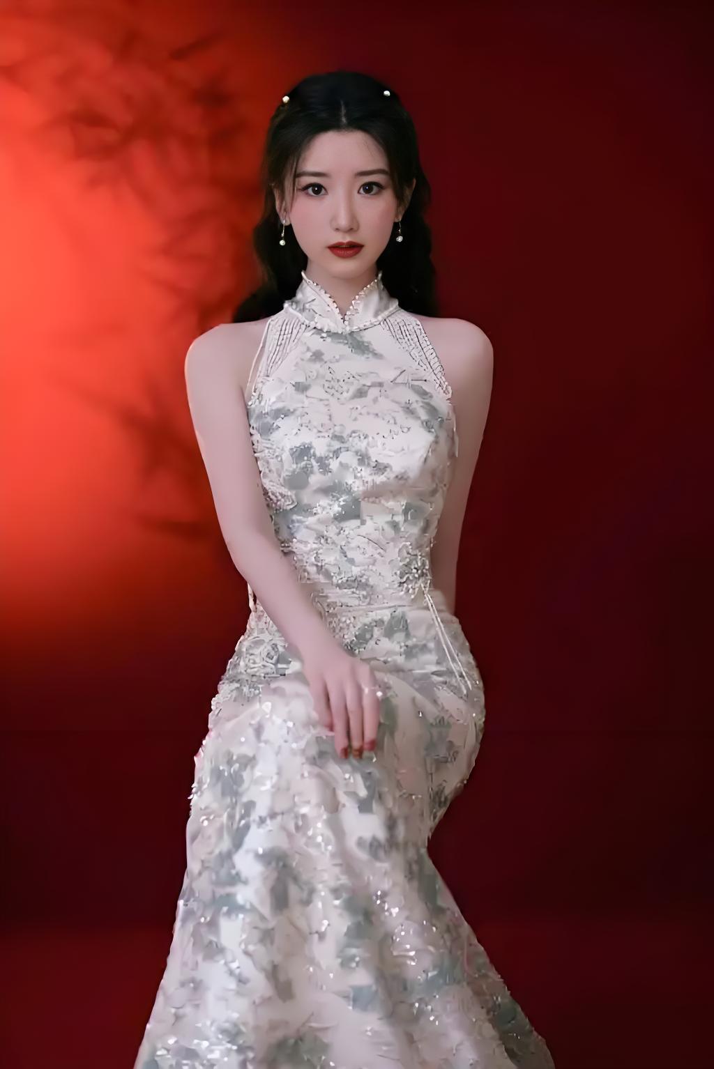 毛晓彤的红毯造型遵循「30%裸露法则」:2025年瑞丽伊人封面,她穿深V水墨长裙,却用珍珠项链遮挡关键部位;GQ红毯的裤装造型,特意在领结处加入蝴蝶结元素,将中性风与甜美感中和。最惊艳的是2025年央视春晚,她穿改良旗袍搭配高开衩长裤,侧面开衩露出大腿内侧肌肤,正面却用盘扣和立领保持端庄,这种「犹抱琵琶半遮面」的设计,让她的性感指数飙升300%。