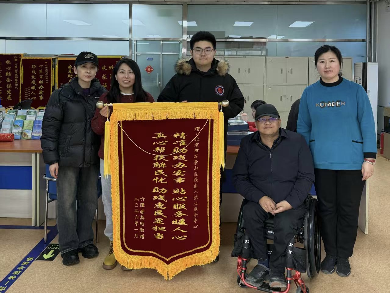 近日,残疾人英硕及其家人将一面印有“精准助残办实事,贴心服务暖人心,真心帮扶解民忧,助残惠民显担当”字样的锦旗,专程送至石景山区残联。家属紧握工作人员的手,激动地说道:“今年刚开年,没想到残联这么快就帮我儿子找到了满意的工作。这下他既能自食其力,也减轻了家里的负担,真是太感谢你们了!”