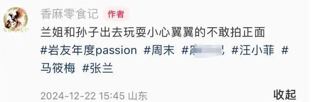 虽然说向太事件曝光后,张兰也被拖下水一起嘲讽,但这一切都没有影响张兰对家庭的热爱。