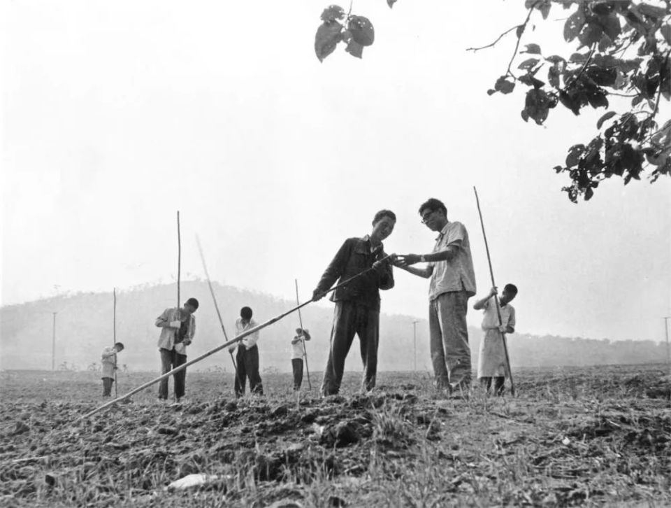 1977年,考古工作者在秦陵西北区进行考古钻探。秦始皇帝陵博物院供图。