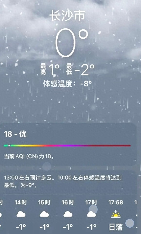 今早,长沙不少市民被窗外“噼里啪啦”的声响吵醒,抬头竟是冰粒子砸落,原来是“雪籽”来袭。这“雪籽”是寒潮带来的固态降水,比普通雪花更易致路面结冰。长沙市气象台预计,今明两日全市最低气温降至冰点以下,体感温度 -8℃,城区有纯雪出现,山区有中到大雪。