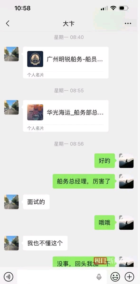 除了报警之外丁女士也联系了广东的海事局,最后核查到了卞昌鹏面试的企业,确实有这个公司不假,但并没有他的名字。