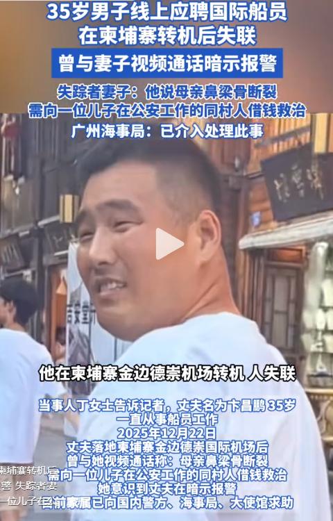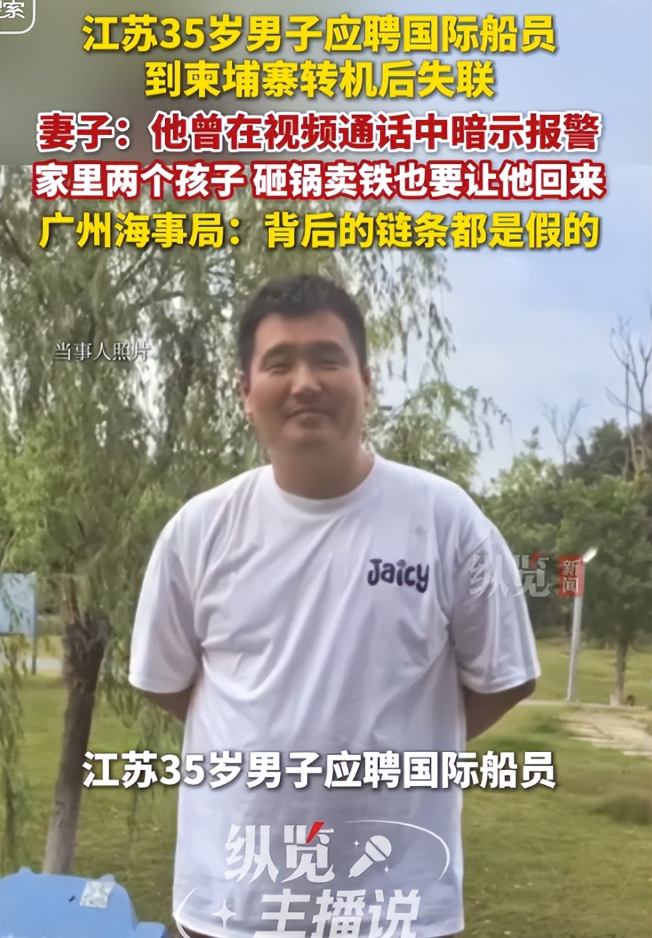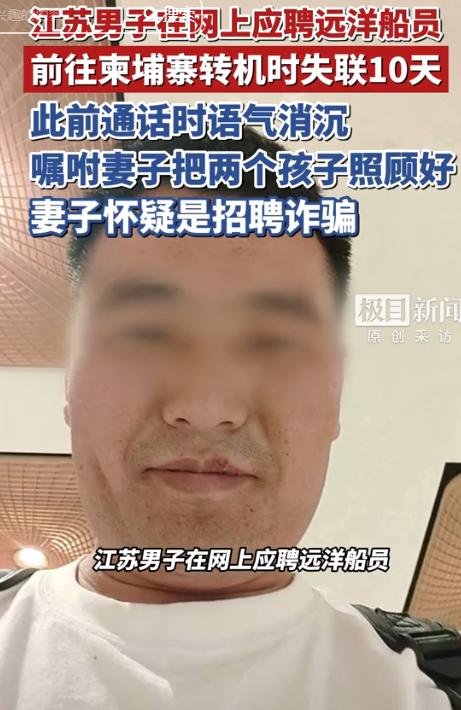 35岁男子网上应聘国际船员,在柬埔寨失联,妻子:通话时丈夫声音哽咽,让自己以后照顾好两个年幼儿子----2026-01-09 ---极目新闻