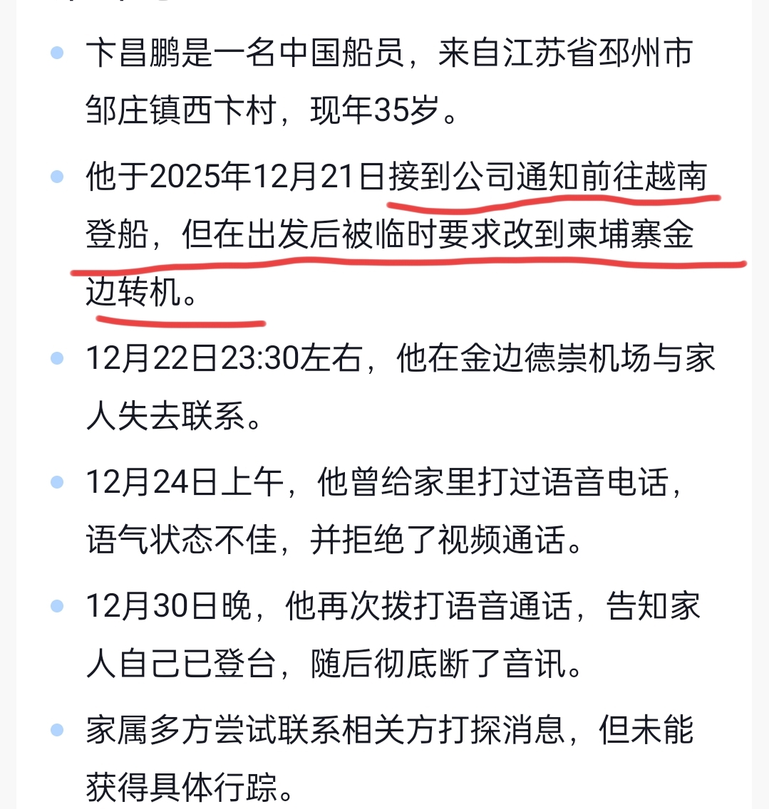 前言1月9日,官媒极目新闻报道称:江苏一位35岁的男子在网上应聘国际船员,结果却被骗到了柬埔寨。