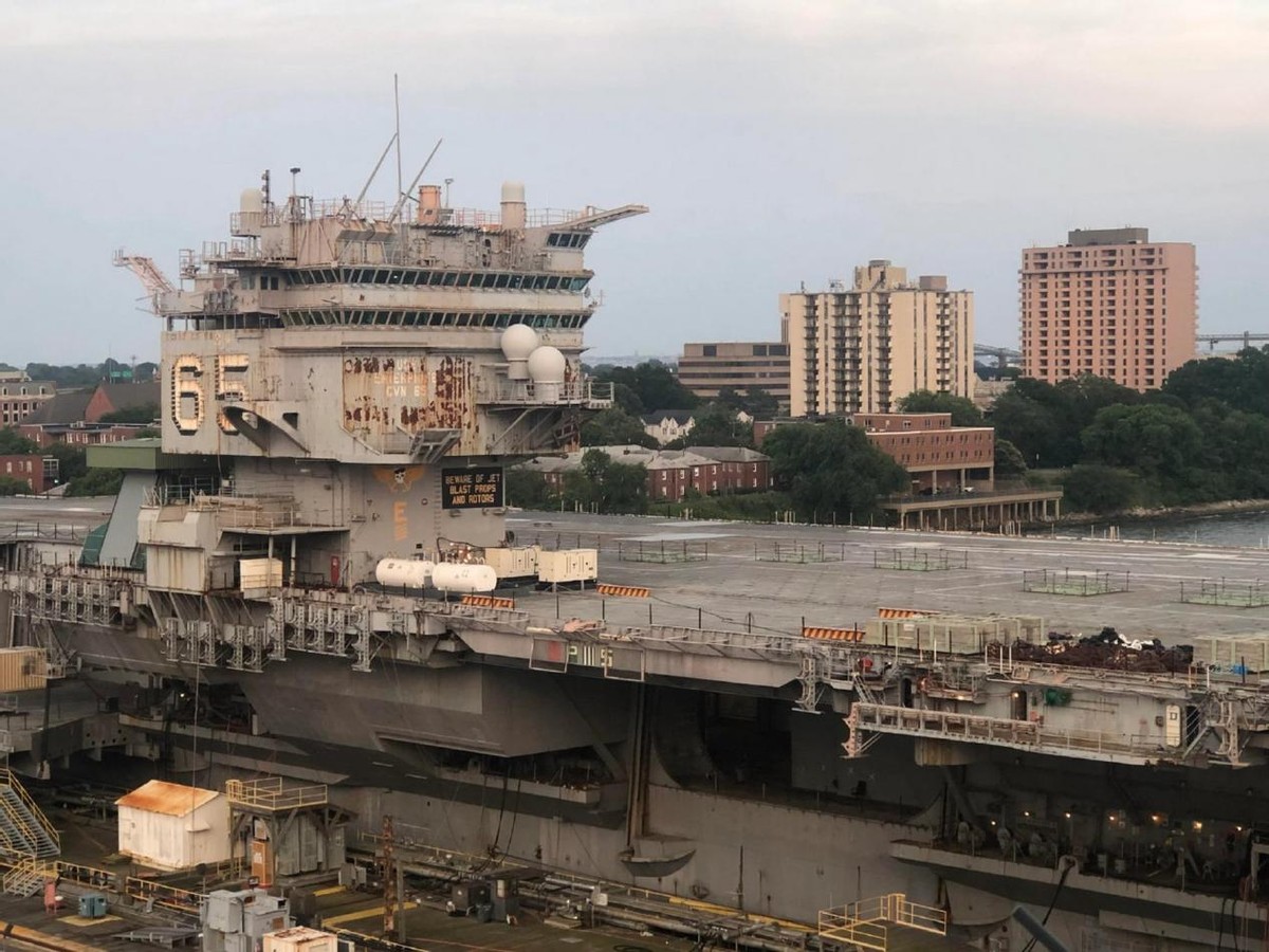 但是其拆了一些好拆的管线系统和隔舱后,就因为核辐射和其它污染问题拆解进度异常缓慢。到2018年时美国就不敢继续拆了,将这艘航母封存了起来。