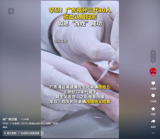 1.广州日报:《罕见!广东祖孙三代10人验血认祖归宗如愿“改姓”成功》,2025-5-16