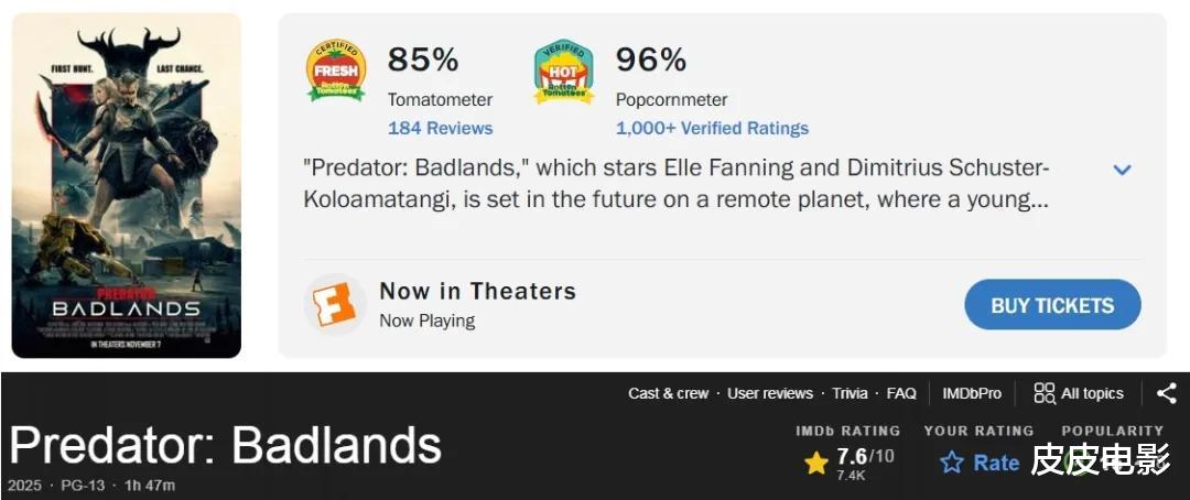 丹·特拉亨伯格也不负所望,《杀戮之地》烂番茄开分新鲜度(媒体评分)85%、爆米花指数(观众评分)96%,IMDb给出7.6分。